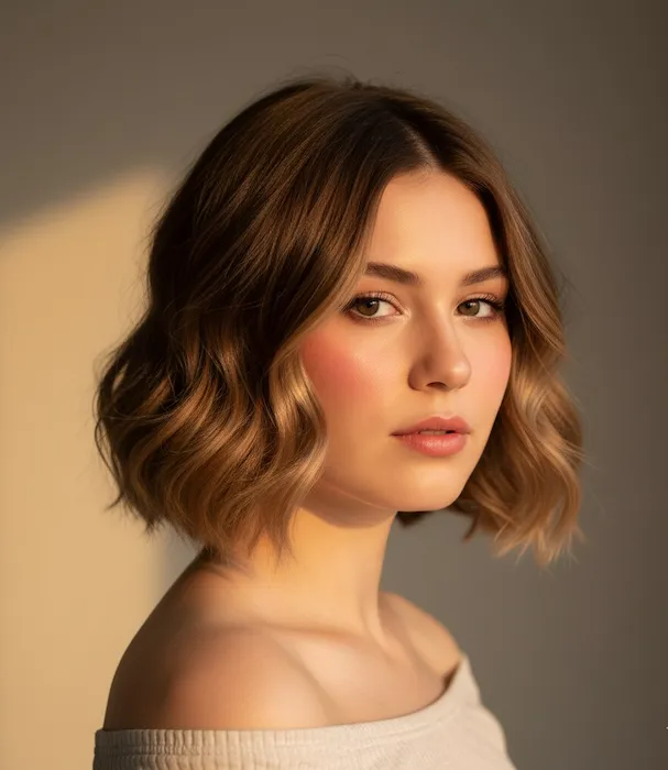A modern wavy short bob haircut brings together texture and structure. Perfect for women who want a fashionable look without much styling effort, this cut highlights natural movement.